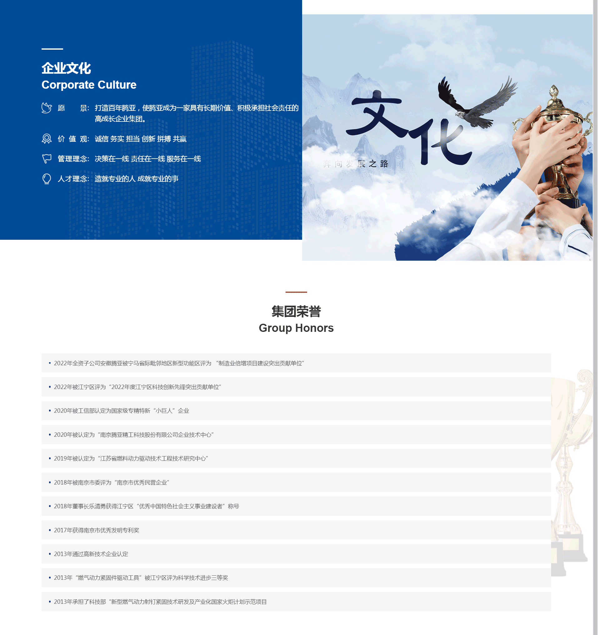 南京腾亚实业集团有限公司是一家位于江苏省南京市的民营企业集团,由多家跨行业、多元化发展的企业组成,参控股企业包括南京腾亚精工科技股份有限公司(股票代码:301125)、南京腾亚装备有限公司、南京腾亚机器人科技有限公司、南京腾森分析仪器有限公司、南京腾亚生物科技有限公司。目前的主要产业布局涵盖建筑家居用品、通用设备、环境工程、生物工程、人工智能等方向。随着公司的持续发展,总资产 规模不断壮大,利润总额稳步增长,根据国家宏观产业政策导向,结合自身资源、机制和人才优势,对内进行产业整合,对外加投资参与力度,积极谋划布局金融投资、化工、新能源等行业,以实现企业更大的发展。